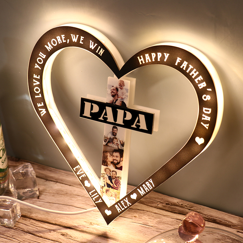 Questa luce notturna personalizzata è il regalo perfetto per papà per Natale, riunioni di famiglia, compleanni, anniversari o qualsiasi altra occasione speciale. Di sicuro lo farà sentire amato e apprezzato e ti ricorda di amare ogni giorno, anche quando non ci sei. Può mostrare i suoi doni significativi ovunque nel soggiorno, nella camera da letto o sul posto di lavoro per un arredamento straordinario.