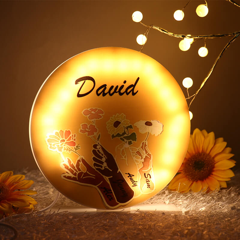 Personalizza il nome del mittente del fiore e il nome del destinatario del fiore su questa luce notturna