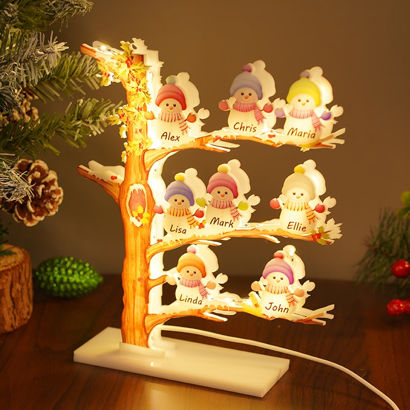 Luce personalizzata per l'albero genealogico del pupazzo di neve