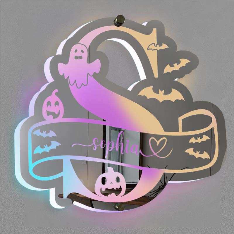 Specchio luminoso di Halloween con nome dell'alfabeto personalizzato